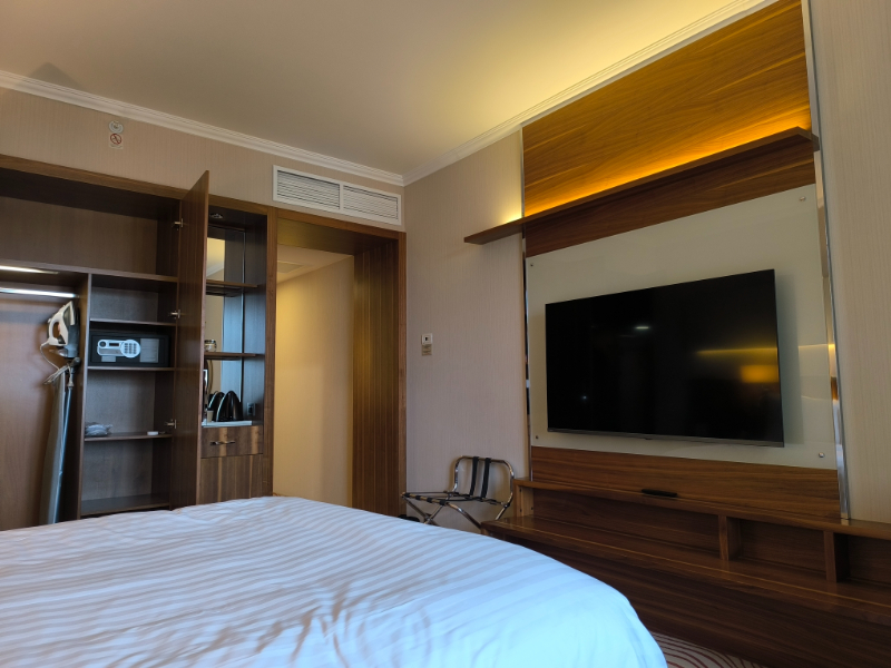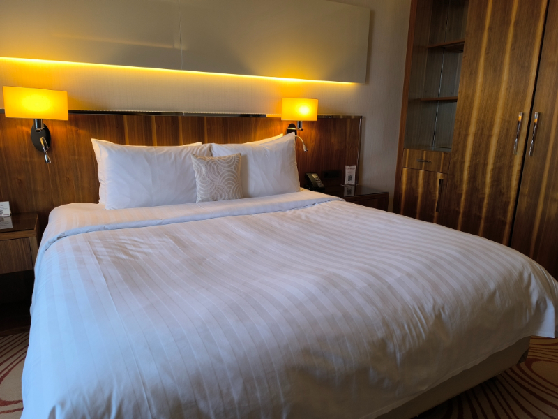 ベッドはキングサイズ、広々としたバスルーム、アメニティもそろっていて、クローゼットも大きくて使いやすかったです。