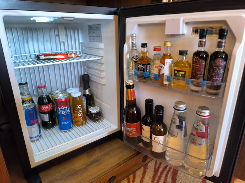 いや~驚くほど値段が高いのでスーパーで飲み物を買って冷蔵庫にいれておきました。