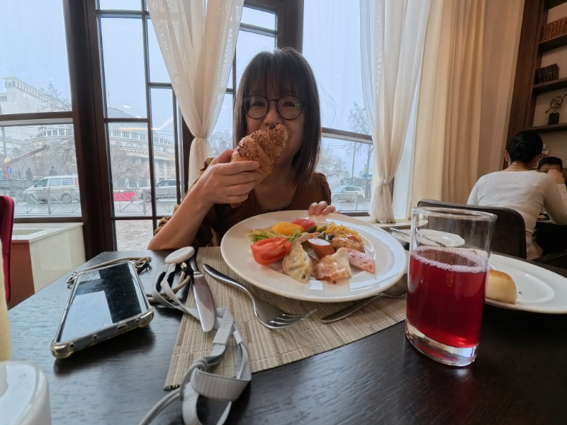 大きな窓からオペラバレエ劇場を眺めながらの朝食は至福の時間でした。