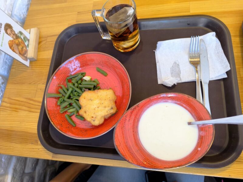 ②のトレイ チーズスープ+インゲン+魚フィレ+紅茶=650円