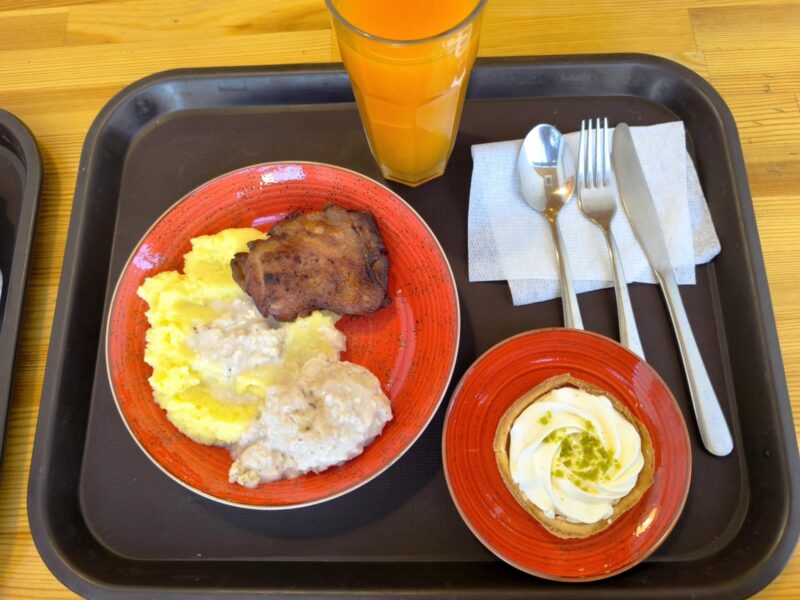 オムレツ&ベーコンセット、クレープ系、ワッフル系、おかゆ系(ロシアのそばがゆ)にサンドイッチです。