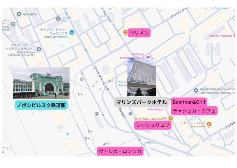 今回ご紹介したお店はすべてノボシビルスク鉄道駅エリアです。