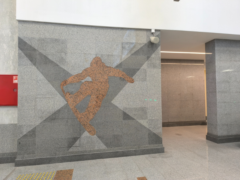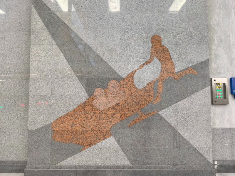 構内はシベリア・アリーナをイメージしており、スポーツのイラストがたくさんありました。