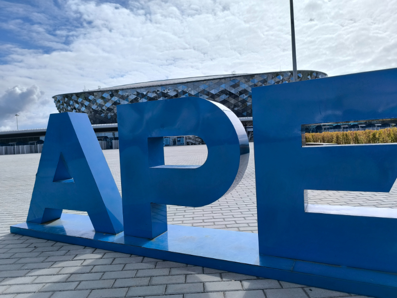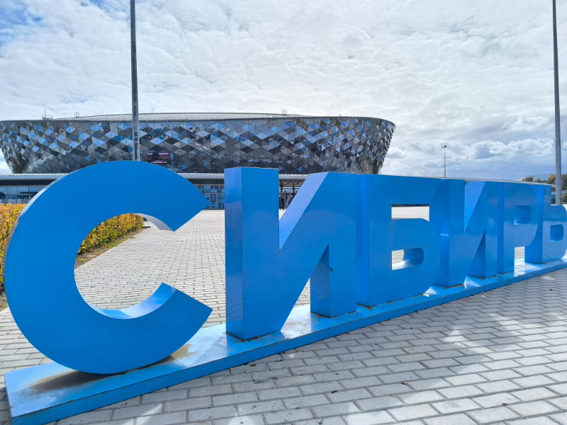 駅の目の前には「シベリア・アリーナ」というスポーツ複合施設があります。