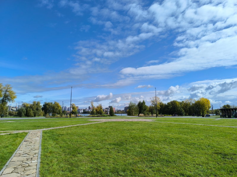 駅を降りて左へ歩くとオビ川沿いにとっても広くてきれいに整備された公園があります。